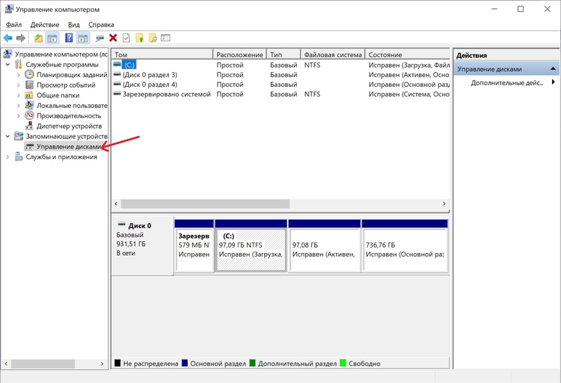 Выбрать «Управление дисками»