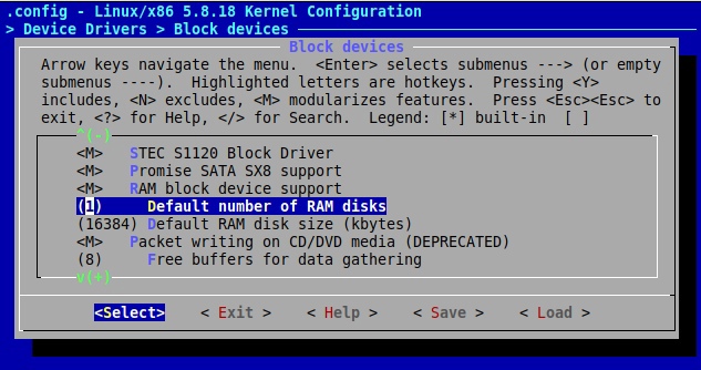 Драйвер RAM-диска будет в виде модуля, приведены его параметры по умолчанию