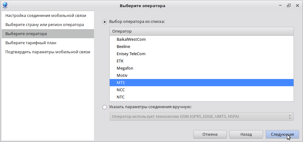 Выбрать оператора. В данном случае - МТС