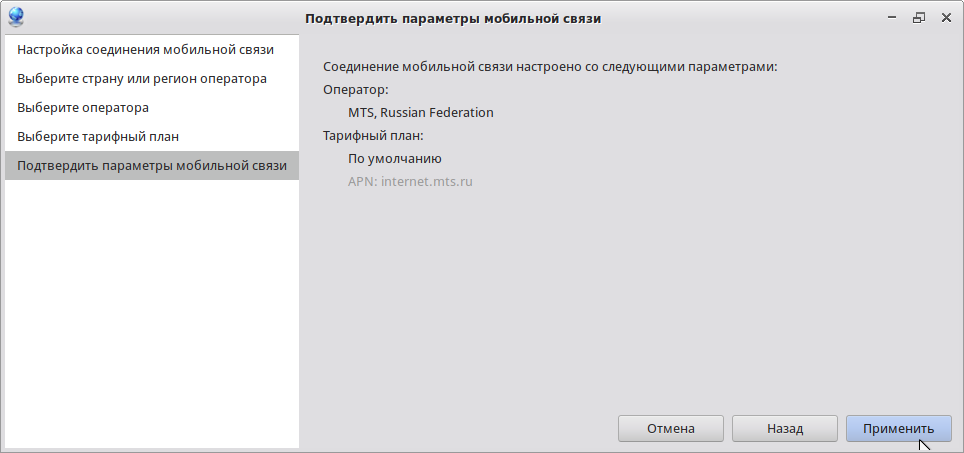 Подключение к интернету должно заработать после нажатия на «Применить»