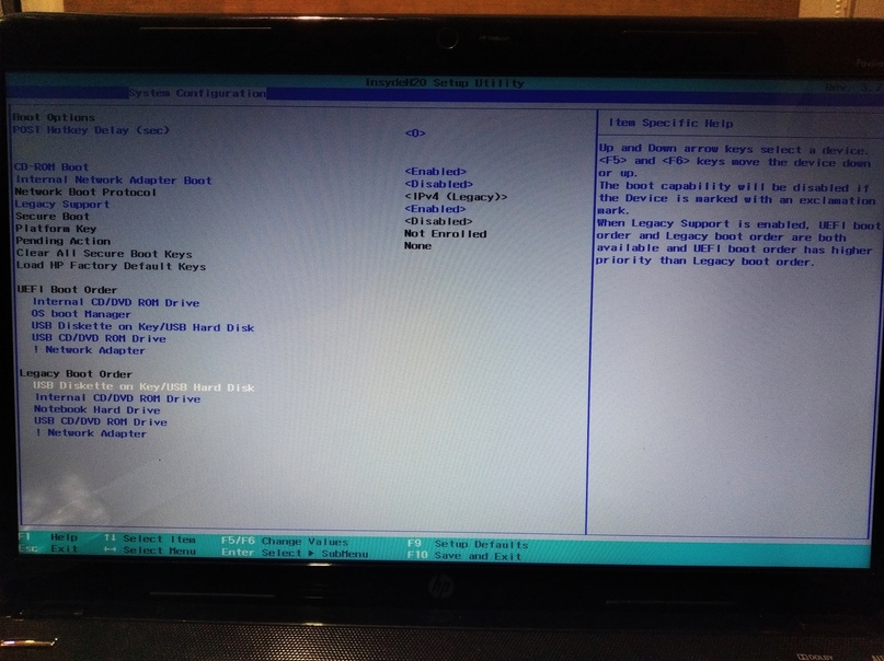 Разумеется все ценные данные мы сохраним на носители или на сервер. Итак, у нас всё готово. Теперь зайдём в BIOS и поставим приоритет на загрузку с флешки. Моя версия BIOS — f24. Чтобы выставить приоритет на загрузку с флешки, я зажимаю клавишу F5 и, нажимая стрелочку, перетаскиваю вкладку на верх списка. Далее я нажимаю клавишу F10 и сохраняю изменения.