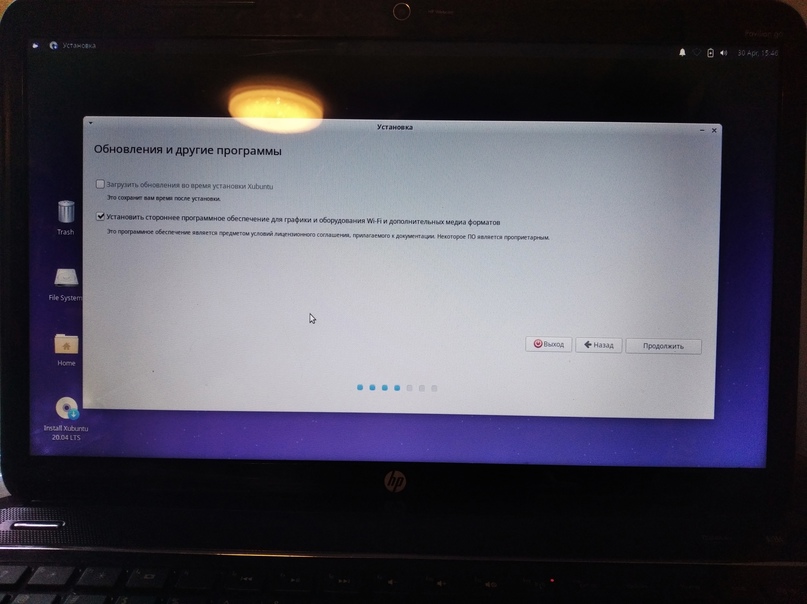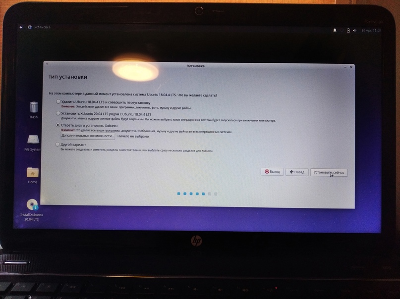 Перезагружаем компьютер. Далее загружаемся с флешки. Нам открылась загрузка Xubuntu. Когда загрузка завершилась, нам открылся рабочий стол
