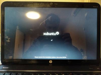 При появлении надписи “Please remove the installation medium, then press Enter” делаем как сказано: отключаем загрузочную флешку от компьютера и нажимаем Enter. После этого компьютер перезагружается
